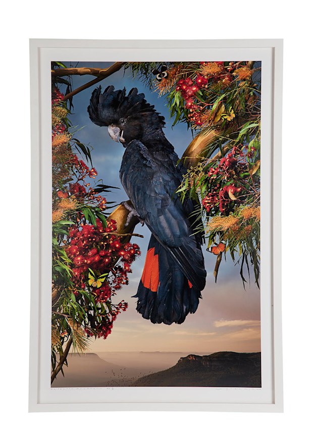 A contemporary work in the catalogue is Australian artist Joseph McGlennon’s giclee digital print titled Eclectus Australis – Black Cockatoo, 2018, estimated at $5000 to $7000.